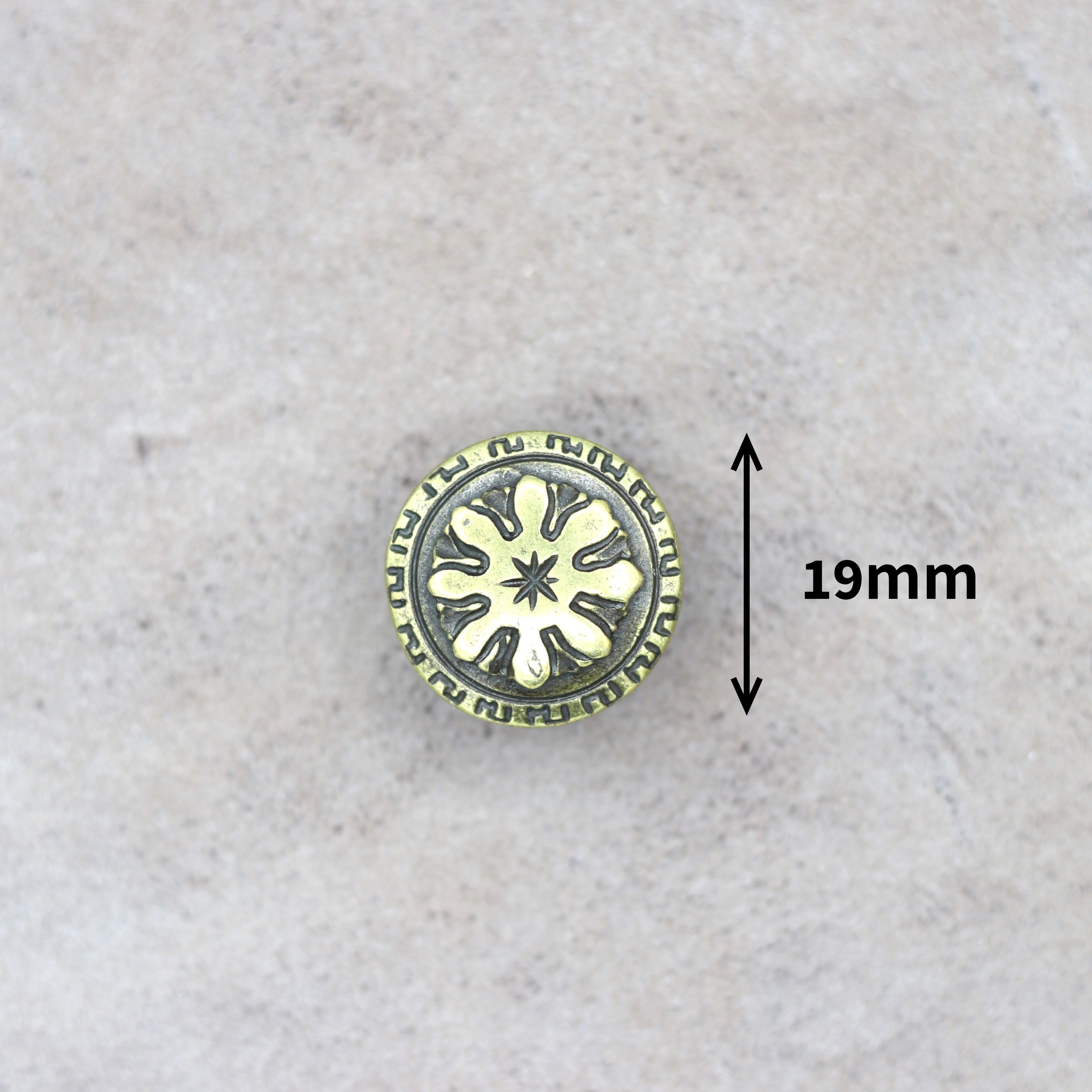 【22530】イタリア製カシメパーツ 19mm 花柄デザイン GOLD 丸形