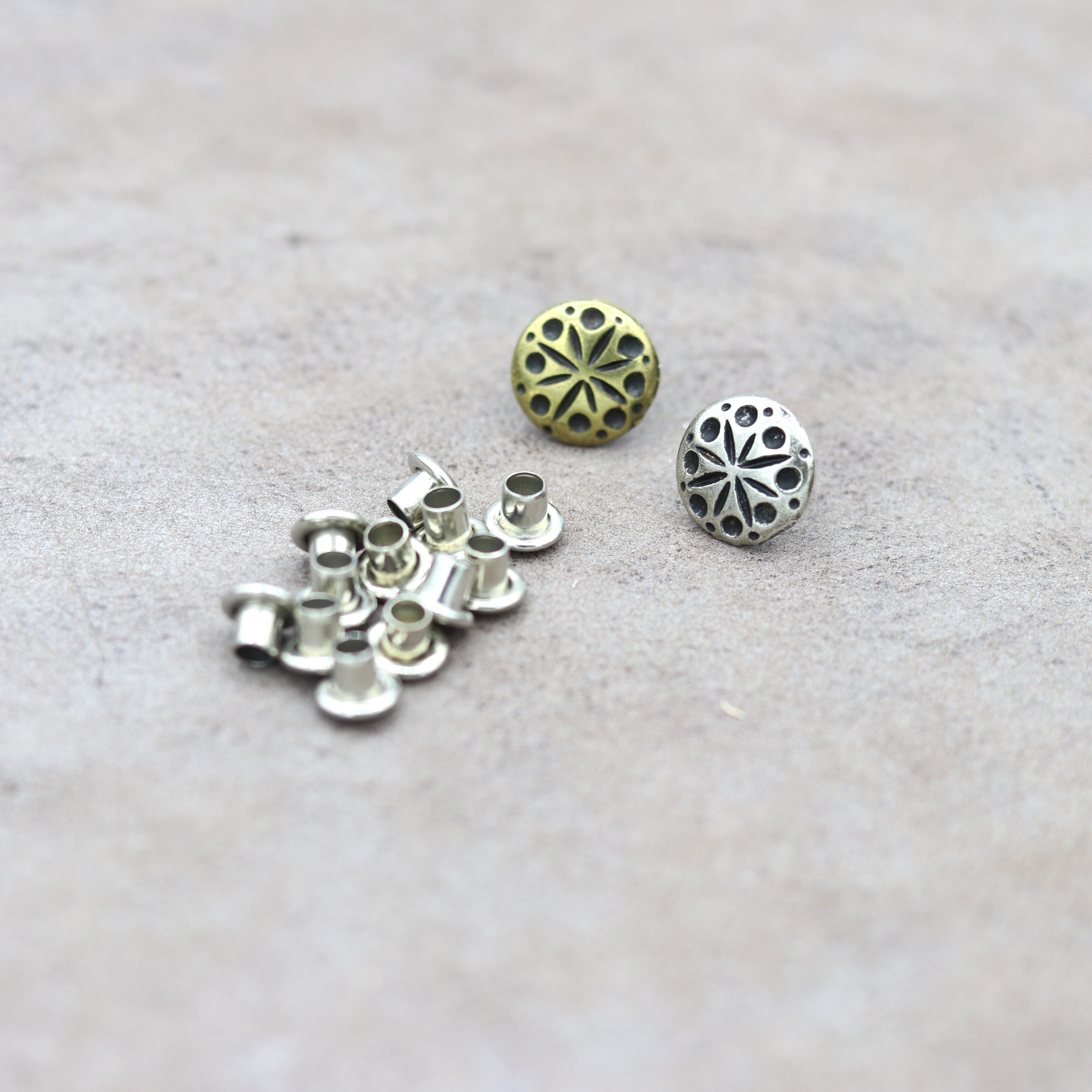 【11869】イタリア製カシメパーツ 10.5mm SILVER 丸形 幾何学フラワーモチーフ