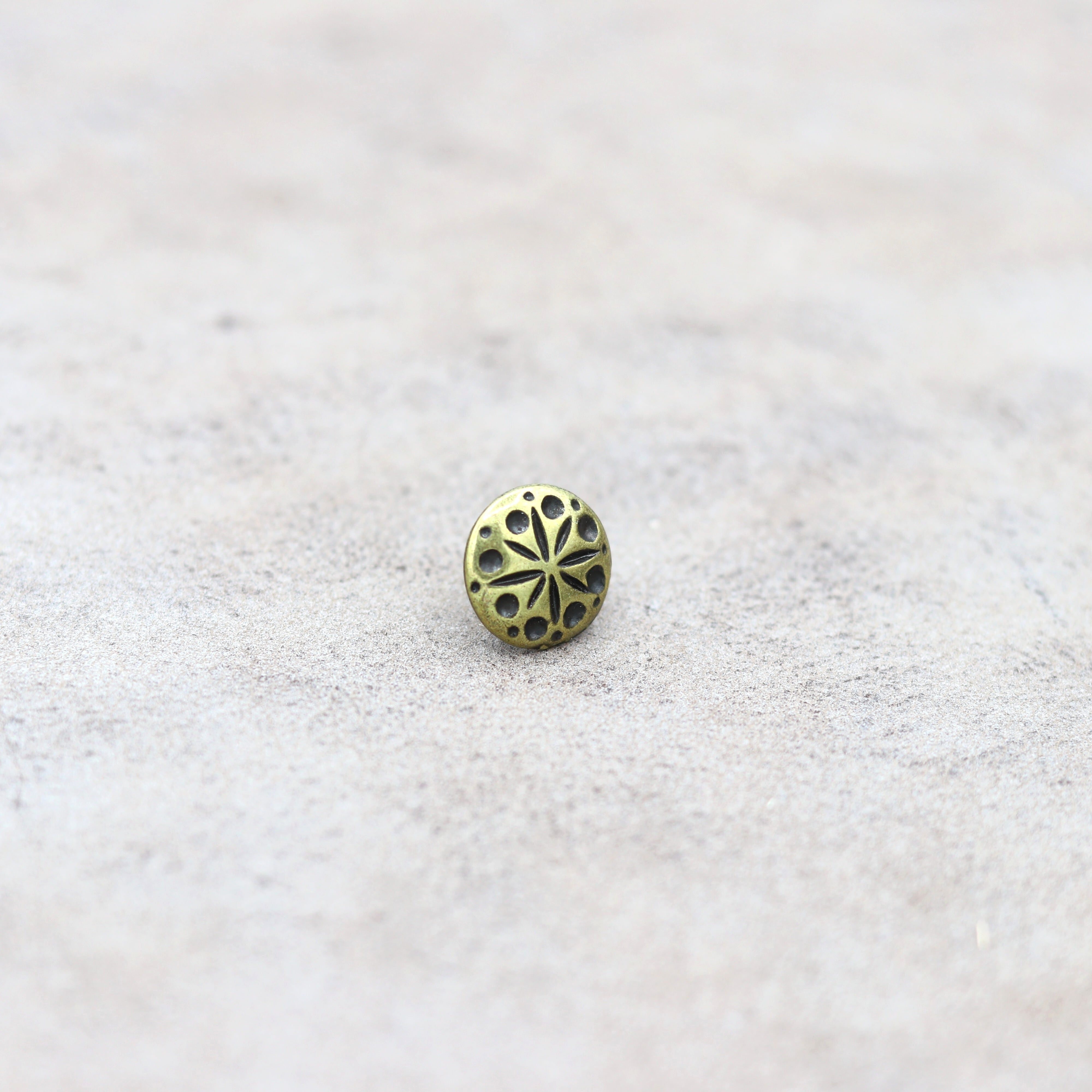 【11869】イタリア製カシメパーツ 10.5mm GOLD 丸形 幾何学フラワーモチーフ