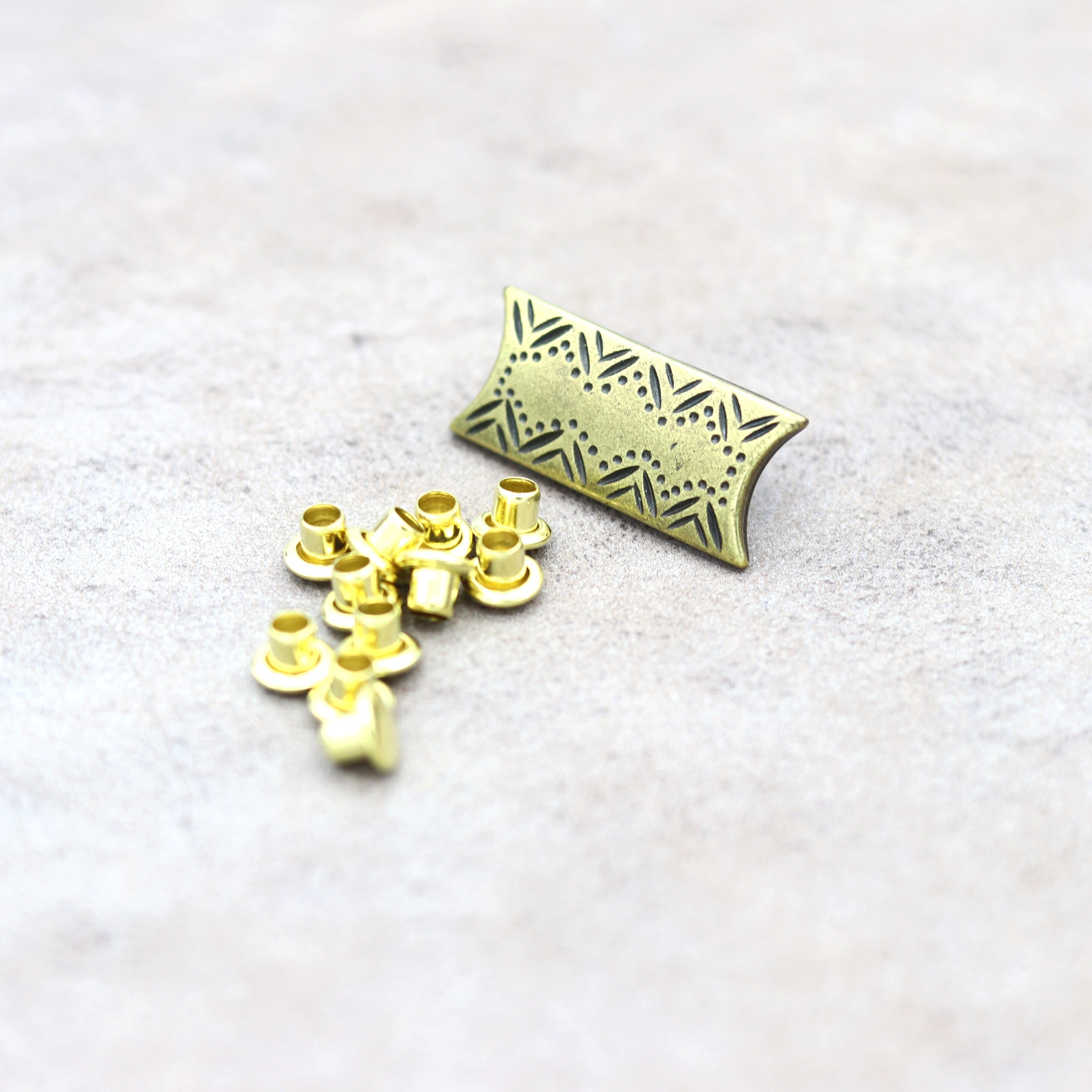 【11880】イタリア製カシメパーツ 25mm GOLD リボン型 幾何学模様 2足あし