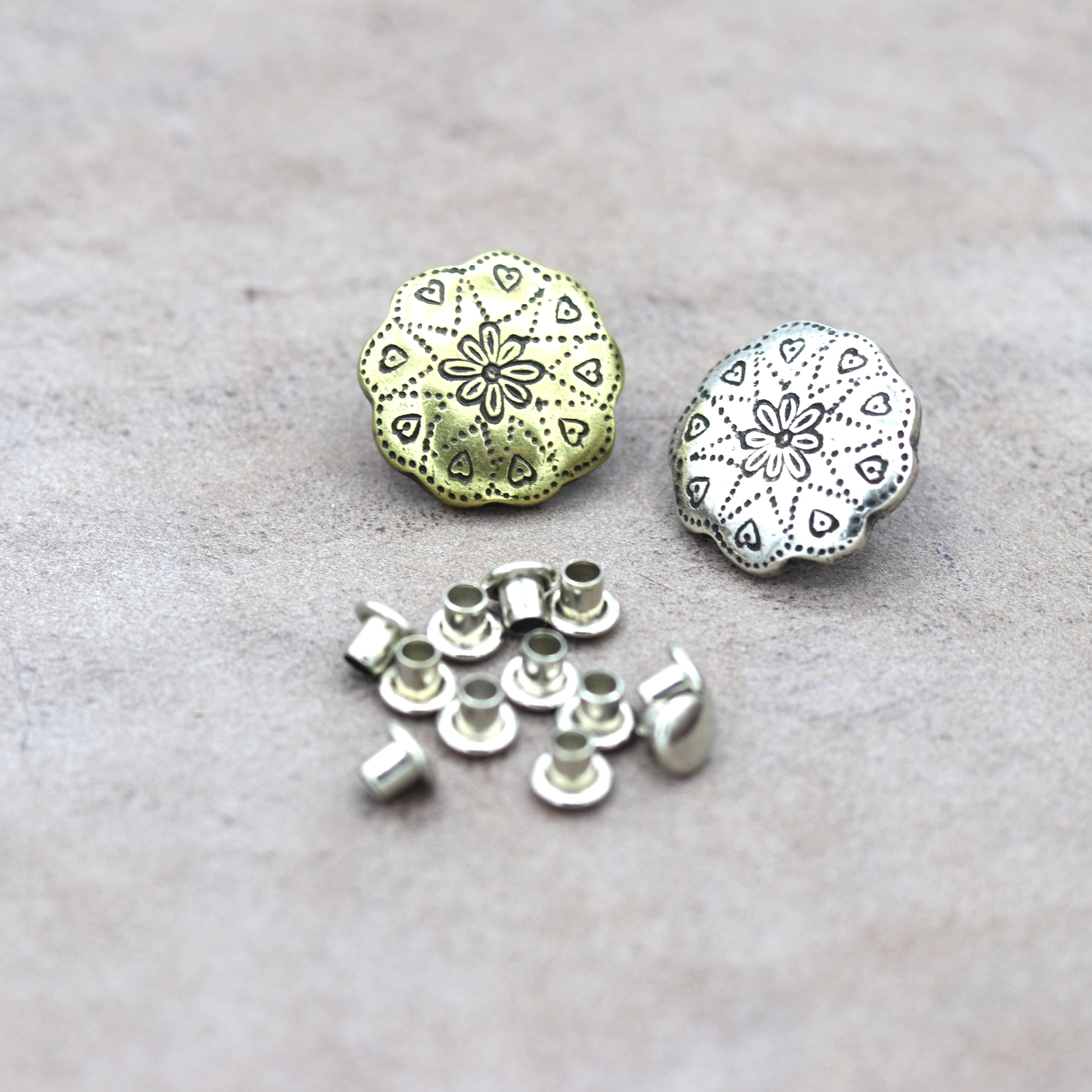 【28300】イタリア製カシメパーツ 19mm GOLD 丸型 花柄モチーフ ハート