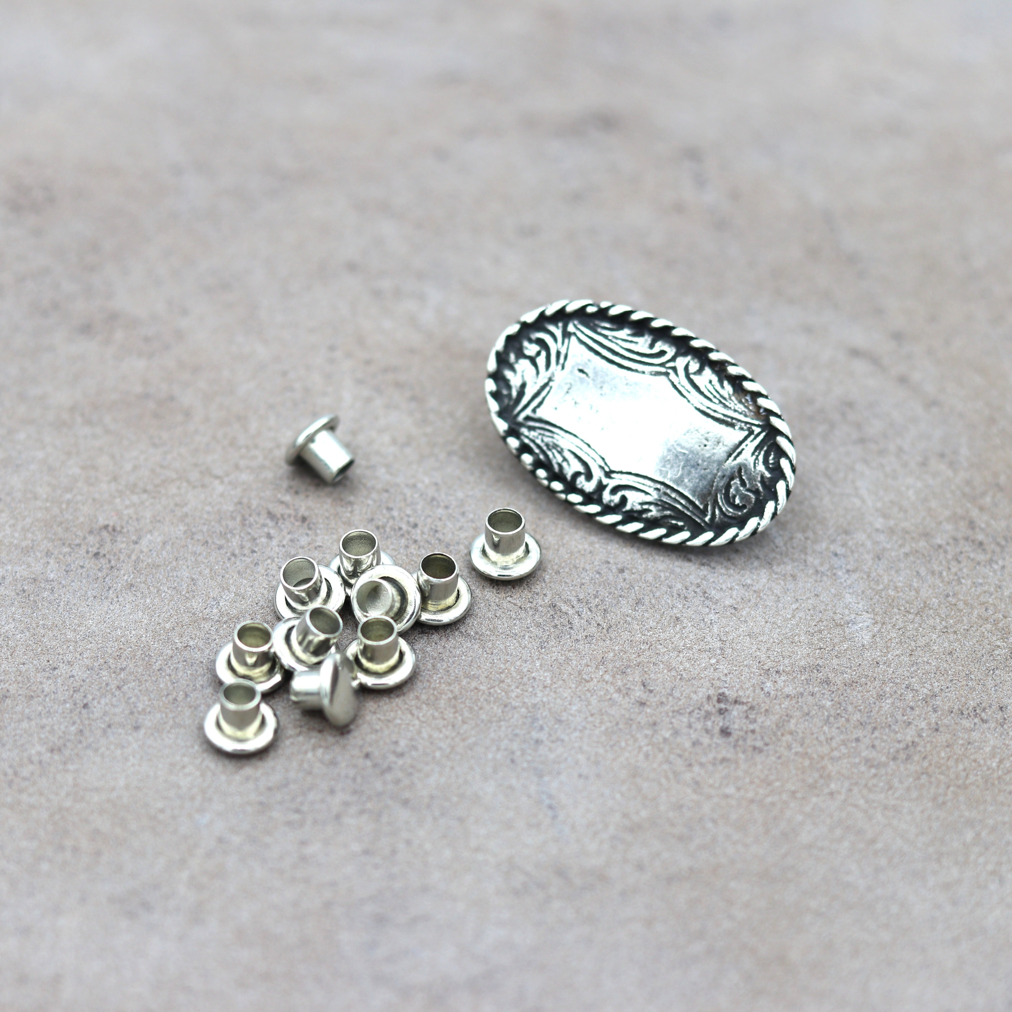 【28295】イタリア製カシメパーツ 26mm SILVER オーバル型 楕円 唐草模様 網目装飾