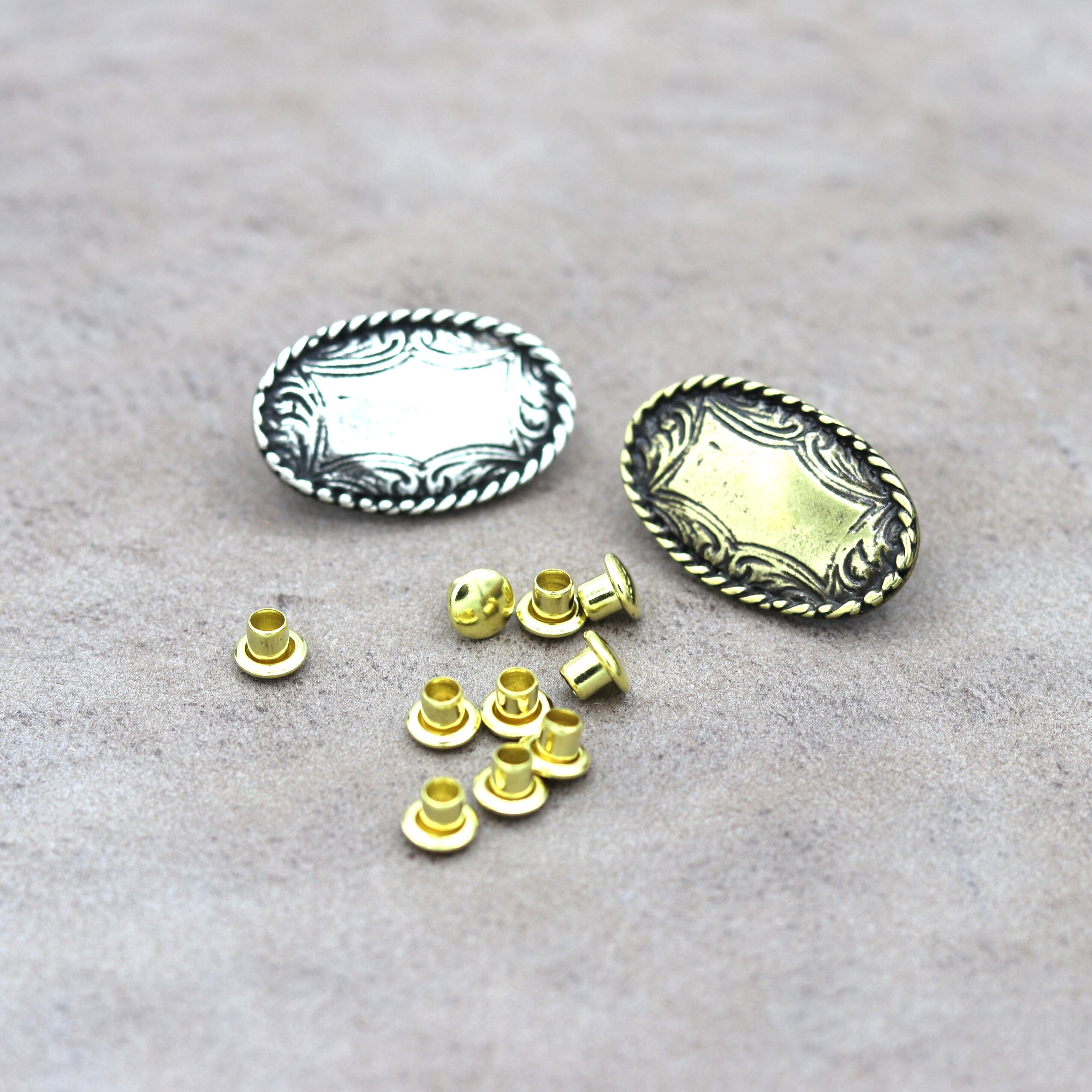 【28295】イタリア製カシメパーツ 26mm GOLD オーバル型 楕円 唐草模様 網目装飾